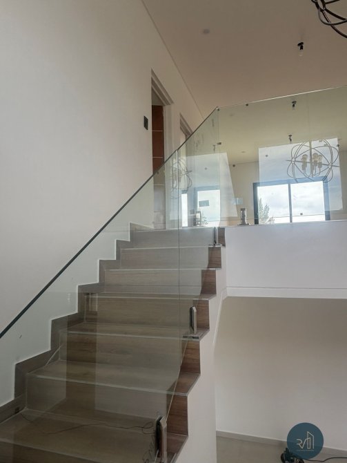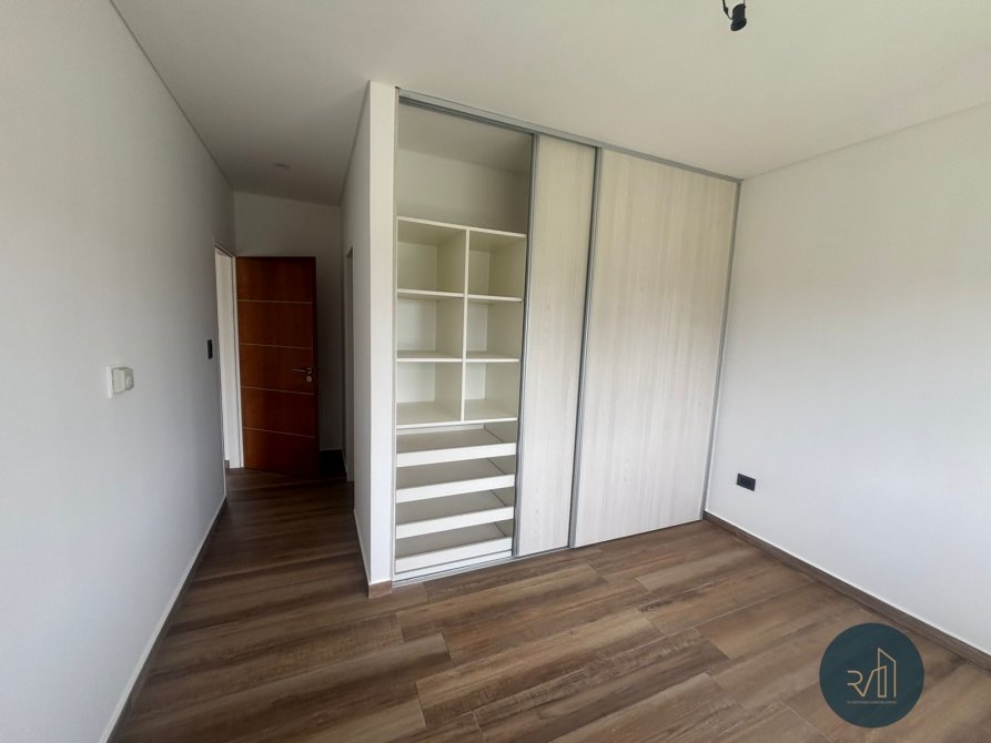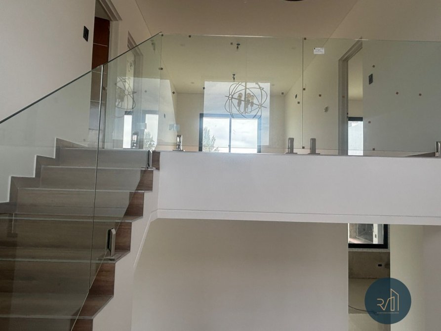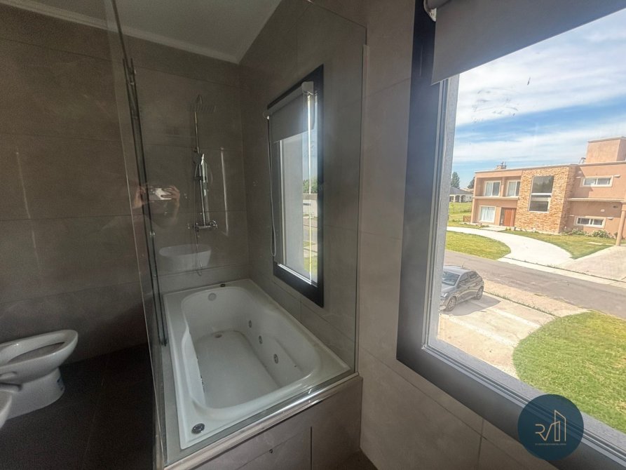 En planta alta la escalera desemboca en un living íntimo que vincula con el dormitorio principal, con baño completo y vestidor completo, y otros dos dormitorios cada uno con su baño completo y placard con frente integral e interiores completos. El dormitorio principal y el living íntimo tienen acceso a la azotea con vistas al contrafrente de la viviend