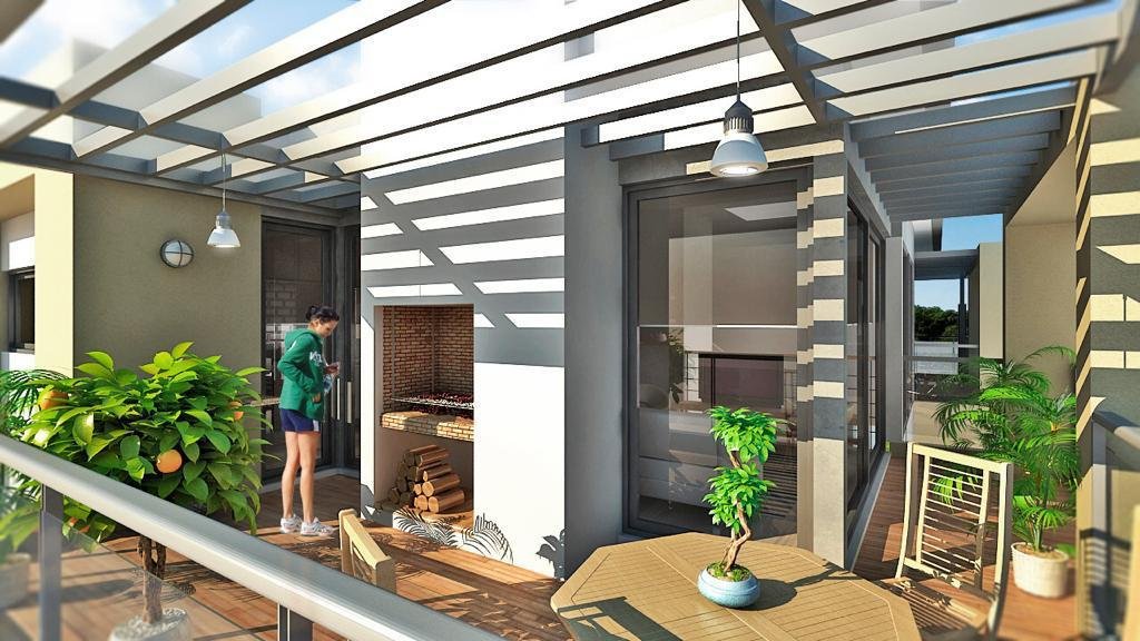 balcón terraza con parrilla, pre instalación para 3 aires acondicionados tipo Split frio/calor.