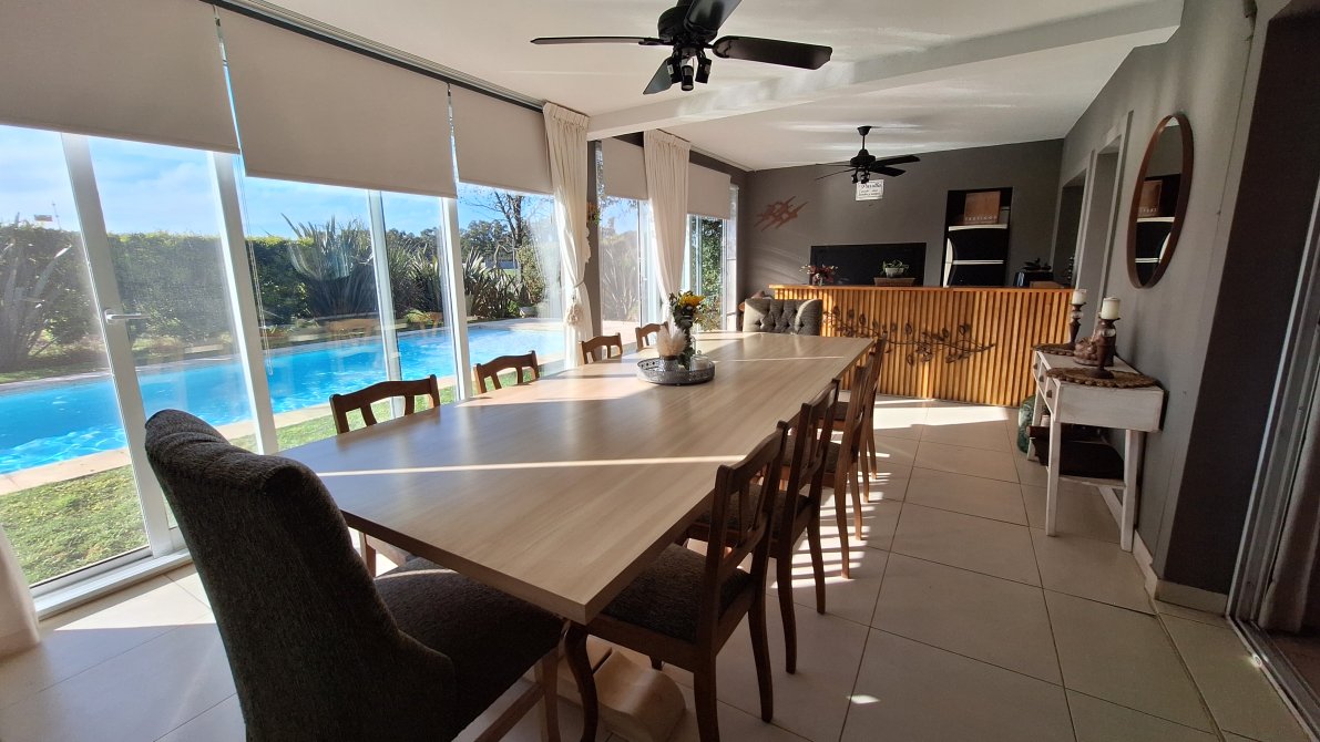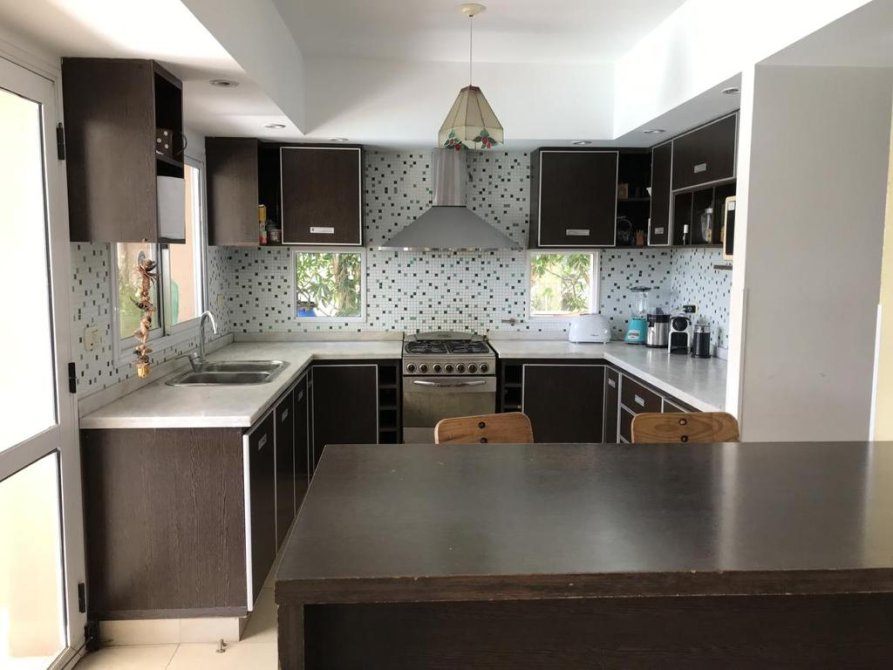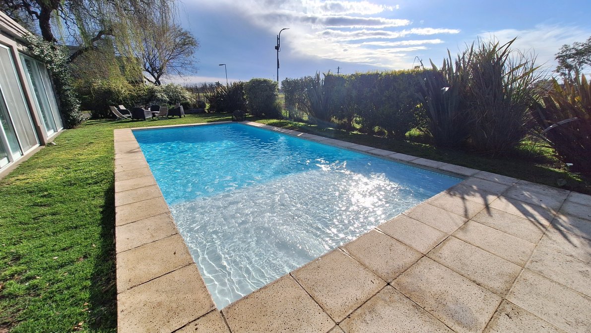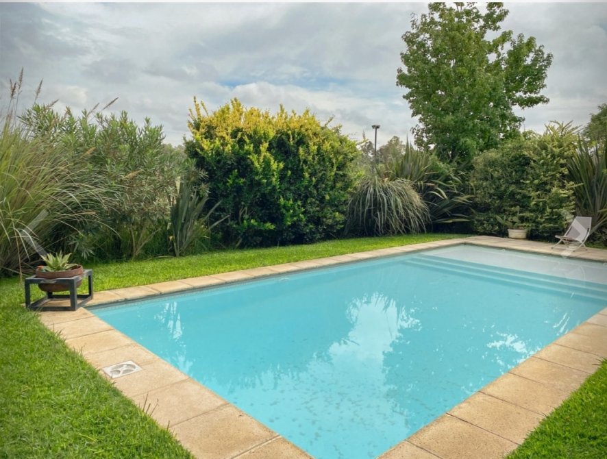 En el exterior se encuentra la galería cerrada con parrilla techada y barra, dando acceso al jardín con gran vegetación y piscina.