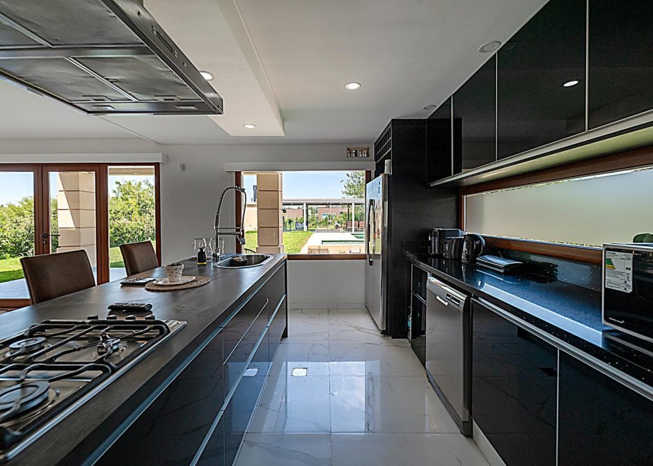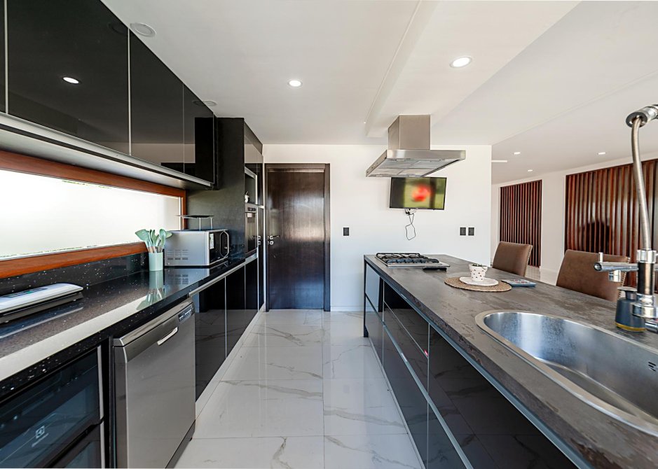 Cocina con barra desayunadora, mesada de DEKTON. Griferías y Bacha de categoría.