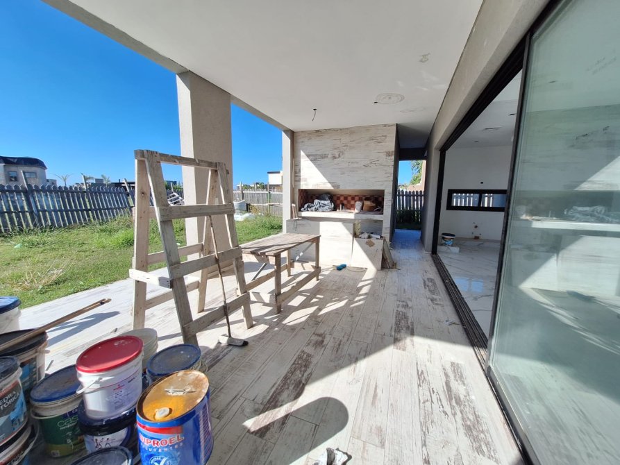 Galería semicubierta con parrilla, guarda todo y baño exterior