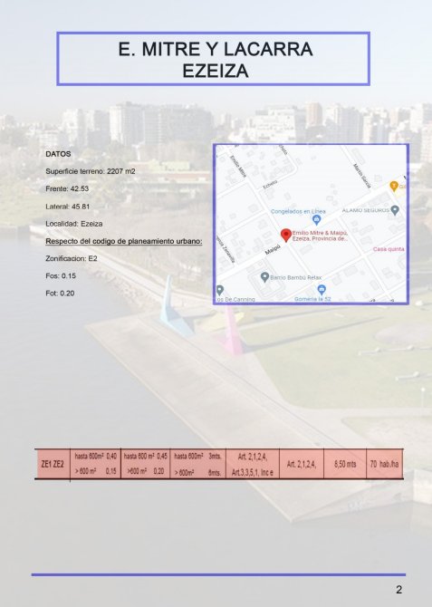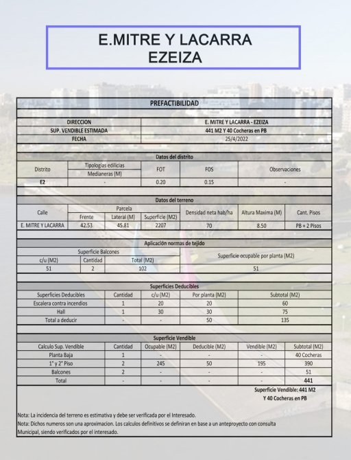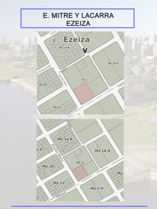 TERRENO CUADRADO EN ESQUINA DE SOBRE AVENIDA LACARRA (MAIPU) 42.53 M, SOBRE MITRE 45.81 M., DE FONDO 44.79. HACIENDO UNA SUPERFICIE TOTAL DE 2207 M2.