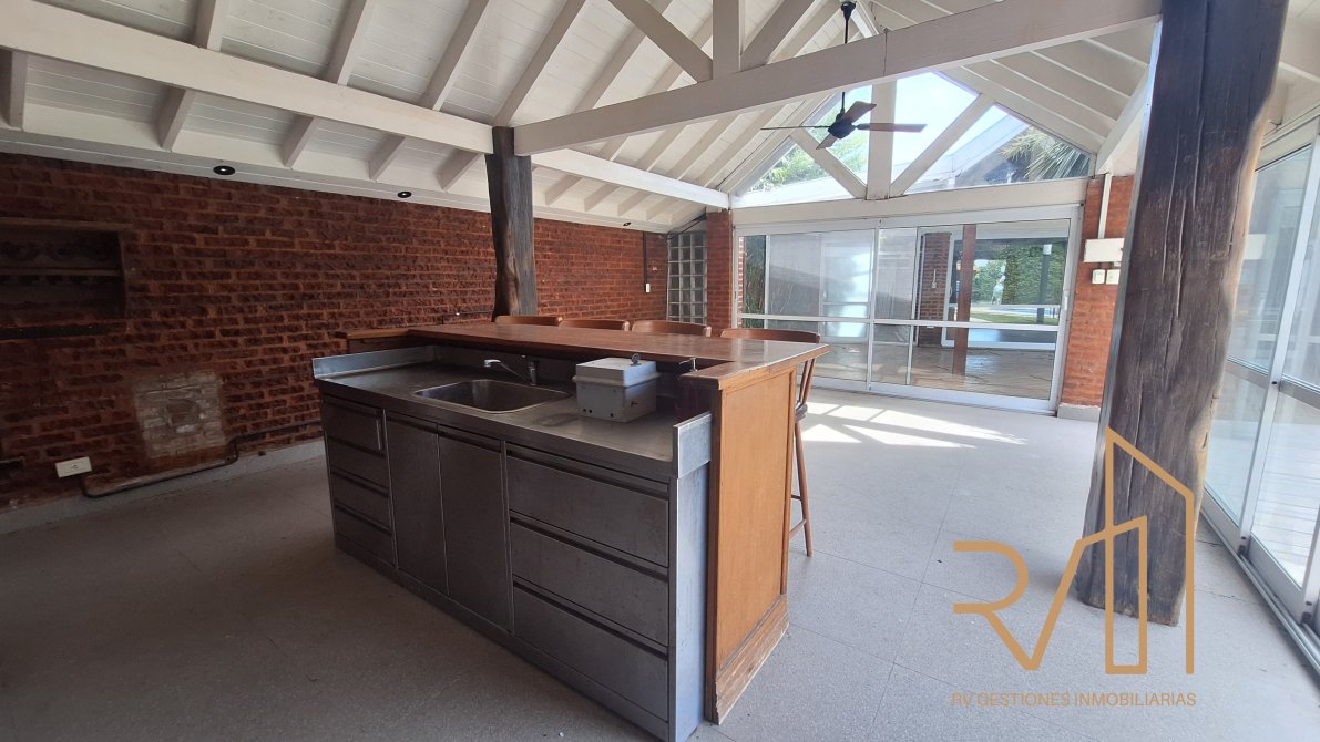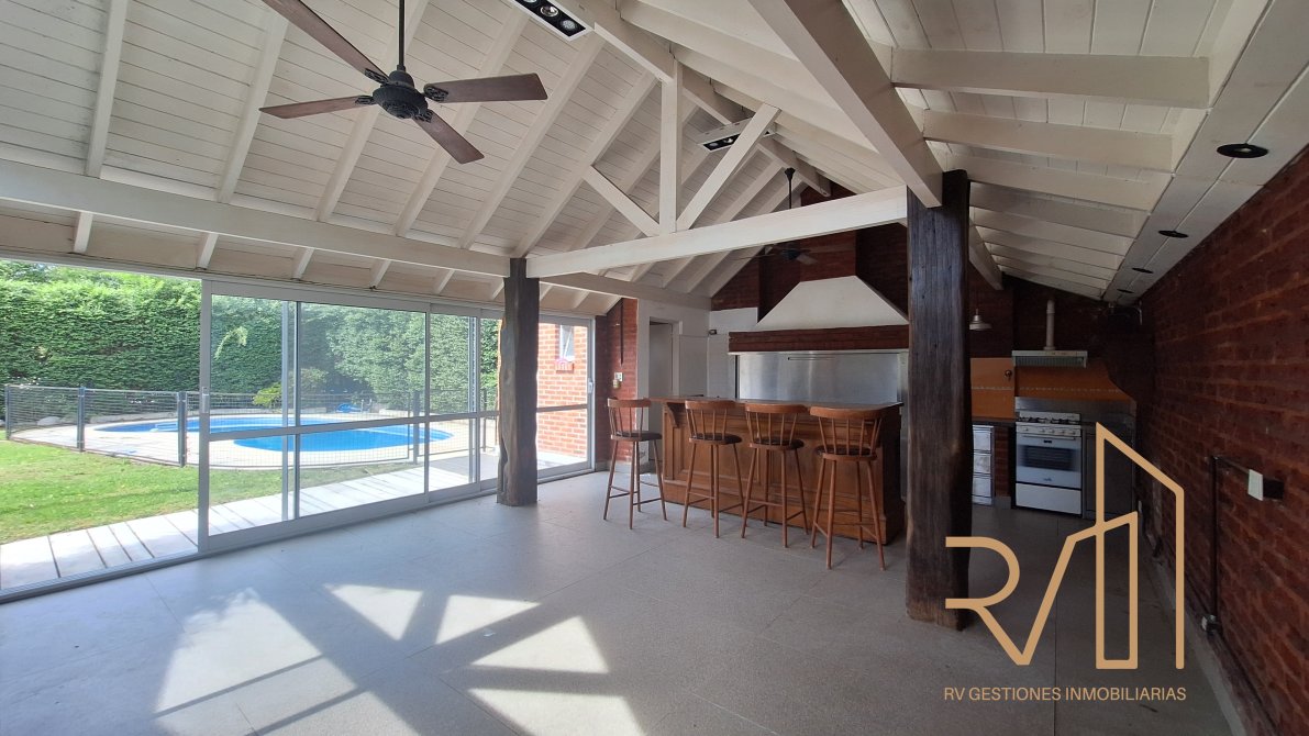En el exterior, ofrece una galería cubierta y un quincho independiente totalmente equipado con parrilla, horno, isla con bacha y baño con ducha. El área social se complementa con un patio cubierto, espacio de cochera y un patio con piscina revestida en venecitas, ideal para disfrutar en familia.
