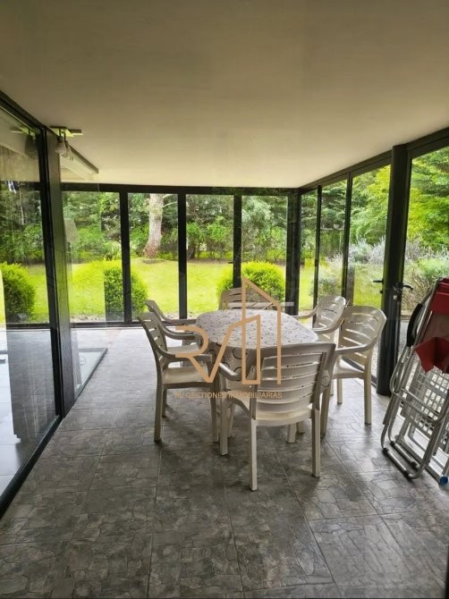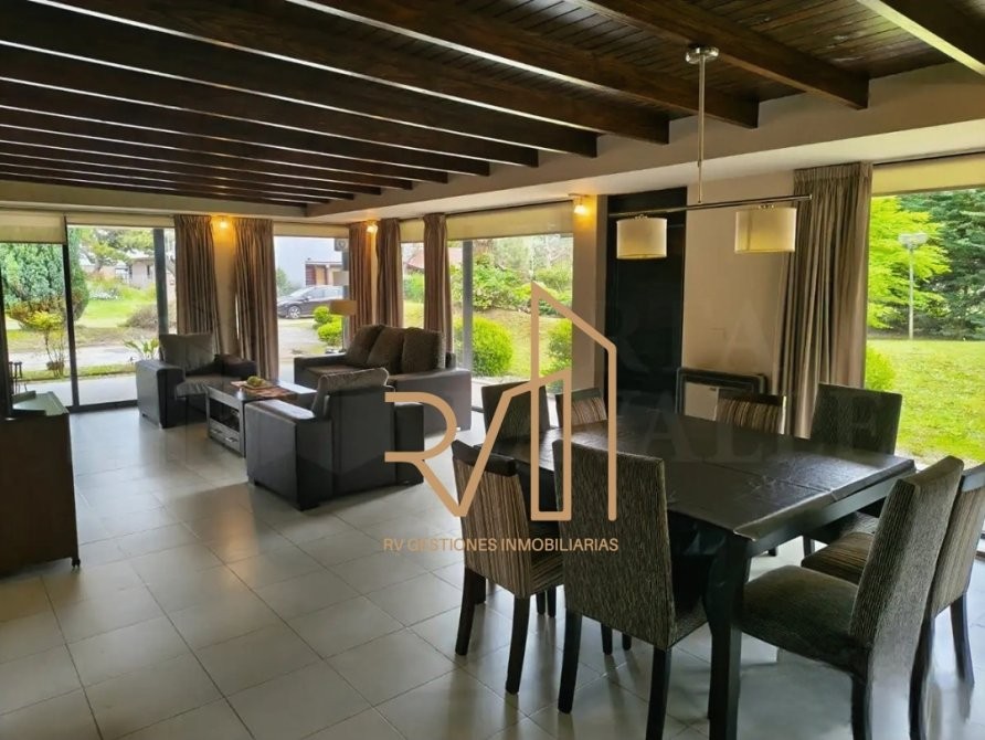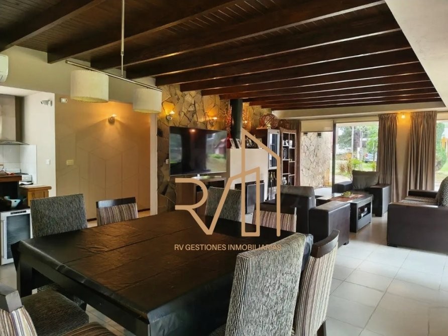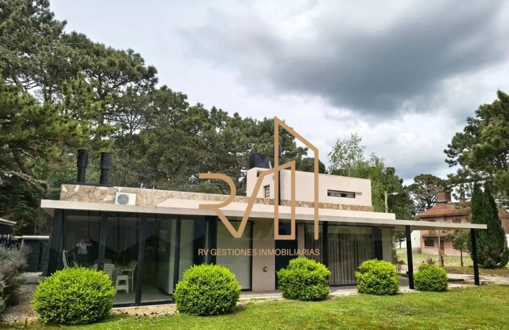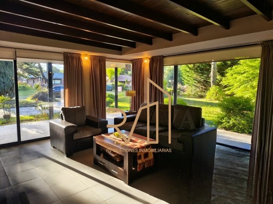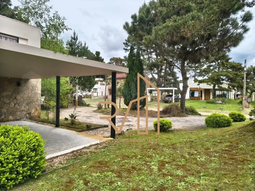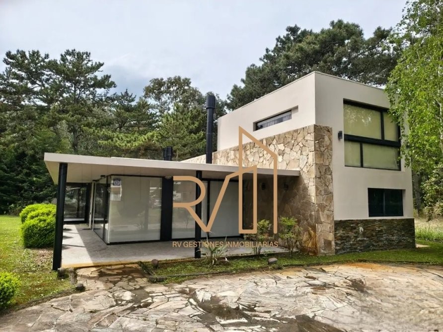 Casa ubicada en un entorno natural, rodeada de vegetación y árboles, sobre un terreno de 800 m². La propiedad cuenta con una superficie cubierta de 160 m² distribuidos en dos niveles, con diseño que integra piedra y amplios ventanales que permiten vistas al jardín y acceso directo al exterior. El área social incluye un living y comedor con acceso a galerías y espacios semicubiertos, ideales para disfrutar del entorno. La cocina está equipada y cuenta con acceso independiente. La casa dispone de tres dormitorios, todos con ventanas al exterior, y dos baños completos, uno de ellos con bañera y el otro con ducha. El espacio exterior ofrece áreas verdes y una zona de parrilla techada, proporcionando opciones para actividades al aire libre.
